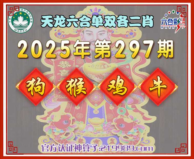 297期:〖天龙六合〗 🥩单双各二肖🥩【.猴.鸡.牛】开:狗44