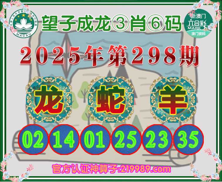 298期:『望子成龙』 ♣️③肖⑥码♣️【龙蛇】开:羊23