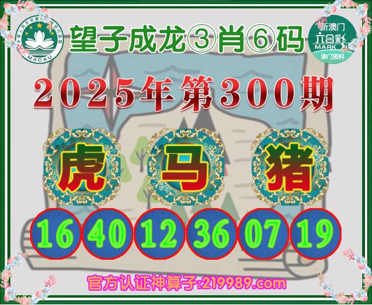 300期:『望子成龙』 ♣️③肖⑥码♣️【马猪】开:虎40