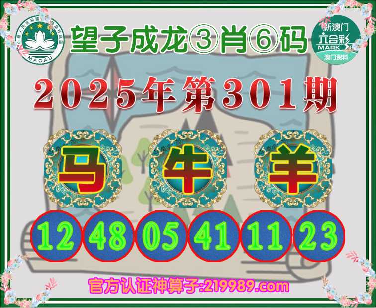 301期:『望子成龙』 ♣️③肖⑥码♣️【马羊】开:牛05