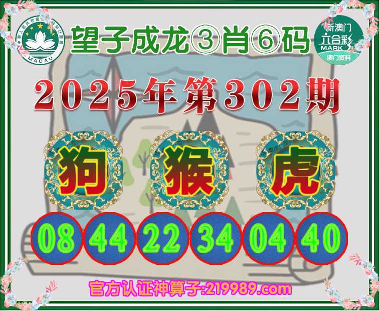 302期:『望子成龙』 ♣️③肖⑥码♣️【狗虎】开:猴22