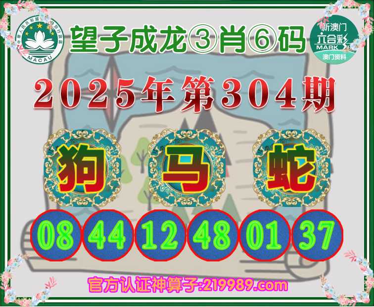 304期:『望子成龙』 ♣️③肖⑥码♣️【狗蛇】开:马48