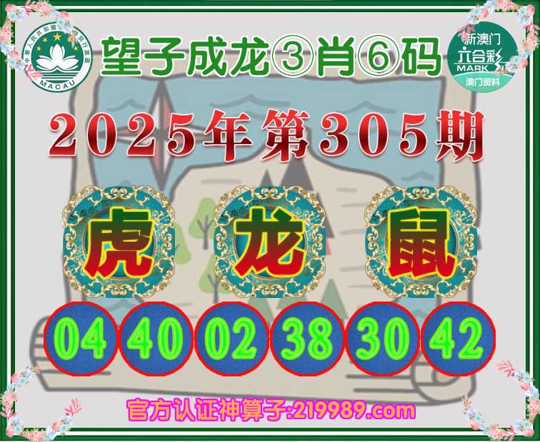 305期:『望子成龙』 ♣️③肖⑥码♣️【虎龙】开:鼠42