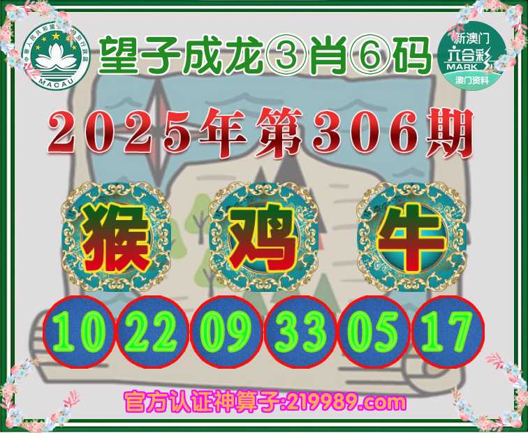 306期:『望子成龙』 ♣️③肖⑥码♣️【猴鸡】开:牛17
