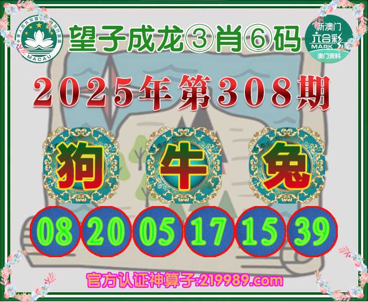 308期:『望子成龙』 ♣️③肖⑥码♣️【狗牛】开:兔39