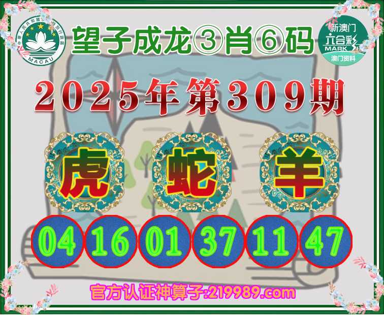 309期:『望子成龙』 ♣️③肖⑥码♣️【虎蛇羊】开:鼠06