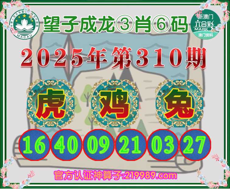 310期:『望子成龙』 ♣️③肖⑥码♣️【鸡兔】开:虎16