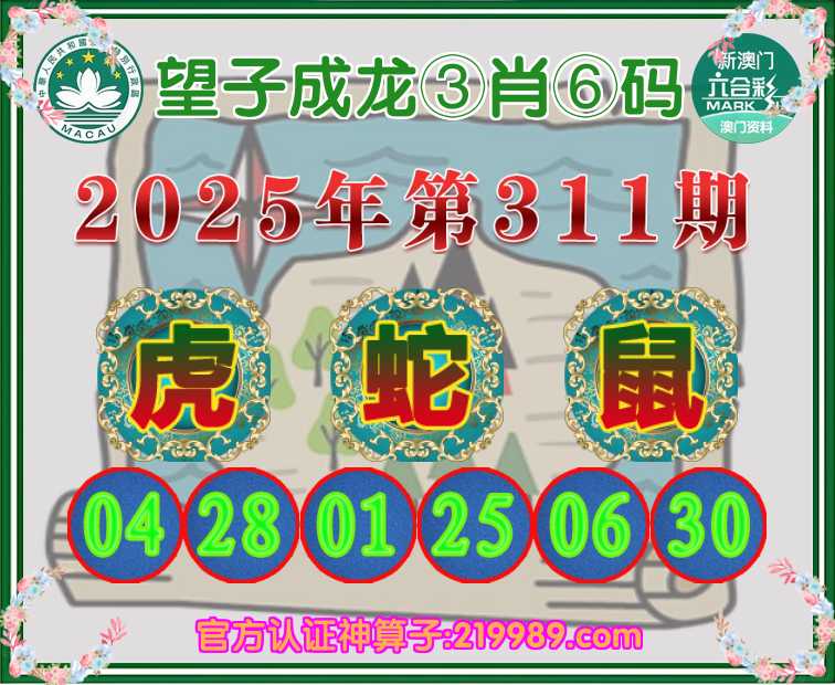 311期:『望子成龙』 ♣️③肖⑥码♣️【虎鼠】开:蛇37