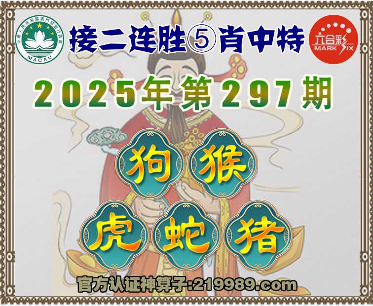 297期:〖接二连胜〗 🀄⑤肖中特🀄【.猴.虎.蛇.猪】开:狗44