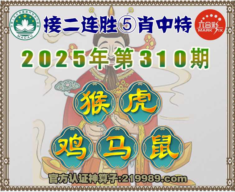 310期:〖接二连胜〗 🀄⑤肖中特🀄【猴..鸡.马.鼠】开:虎16