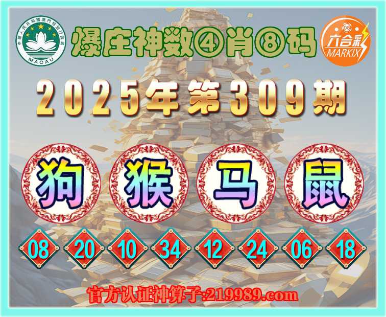 309期:《爆庄神数》 🚵‍♀️④肖⑧码🚵‍♀️【狗猴马】开:鼠06