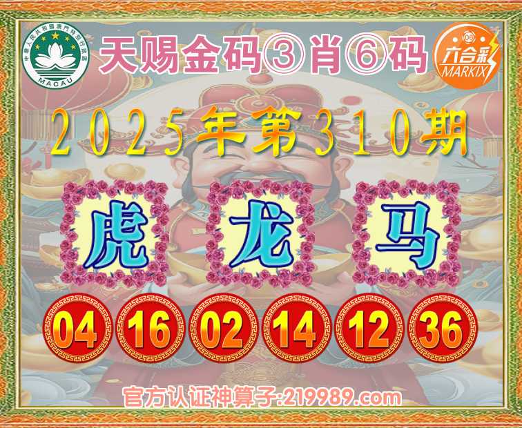 310期:《天赐金码》 🧤③肖⑥码🧤【龙马】开:虎16