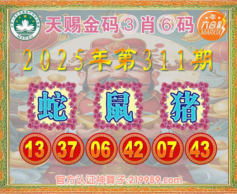 311期:《天赐金码》 🧤③肖⑥码🧤【鼠猪】开:蛇37