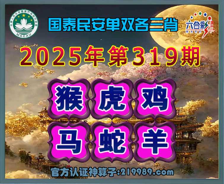 319期:《国泰民安》 🧦单双各三肖🧦【猴.虎..马.蛇.羊】开:鸡45