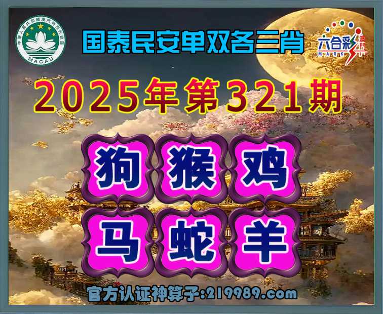 321期:《国泰民安》 🧦单双各三肖🧦【狗.猴.鸡.马.蛇.】开:羊23
