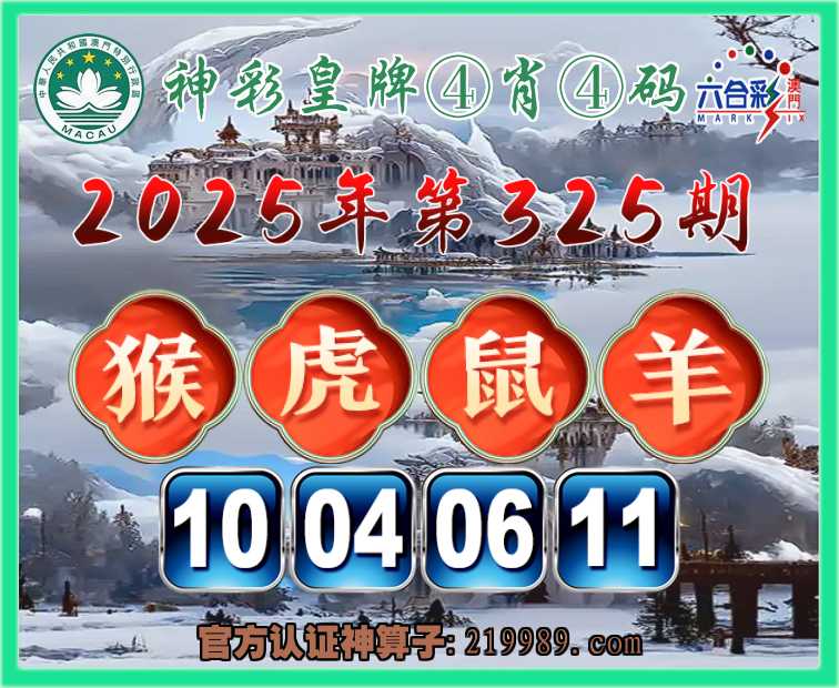 325期: 🎉『神彩皇牌』 🎉④肖④码🎉【猴鼠羊】【10.04.06.11】开:虎04