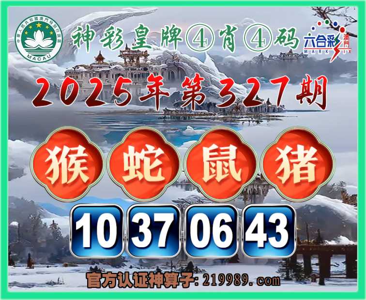 327期: 🎉『神彩皇牌』 🎉④肖④码🎉【猴鼠猪】【10.37.06.43】开:蛇37