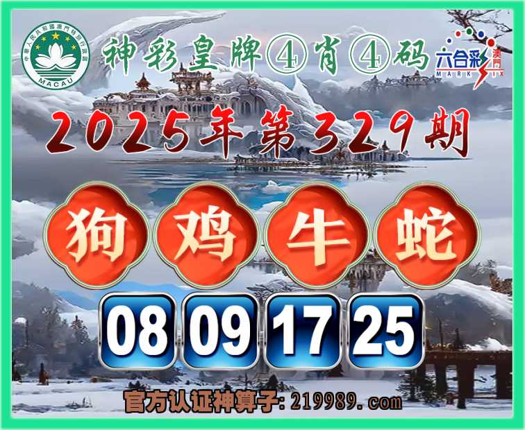 329期: 🎉『神彩皇牌』 🎉④肖④码🎉【狗鸡蛇】【08.09.17.25】开:牛17