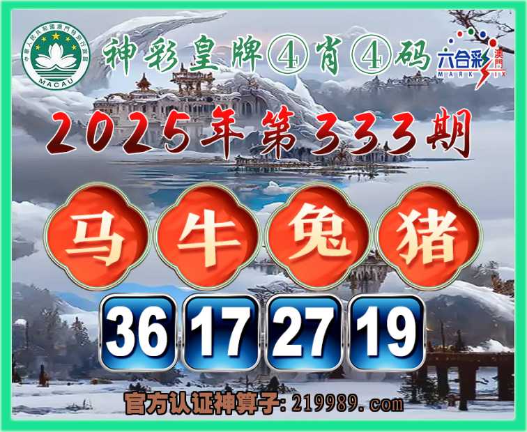 333期: 🎉『神彩皇牌』 🎉④肖④码🎉【马牛兔猪】【36.17.27.19】开:00准