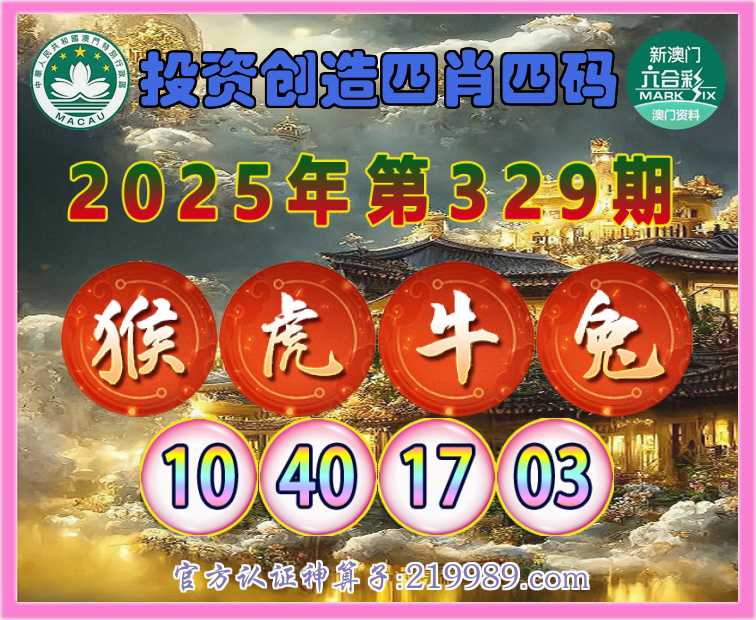 329期: 投资创造 🧶四肖四码🧶【猴虎兔】【10.40.17.03】开:牛17