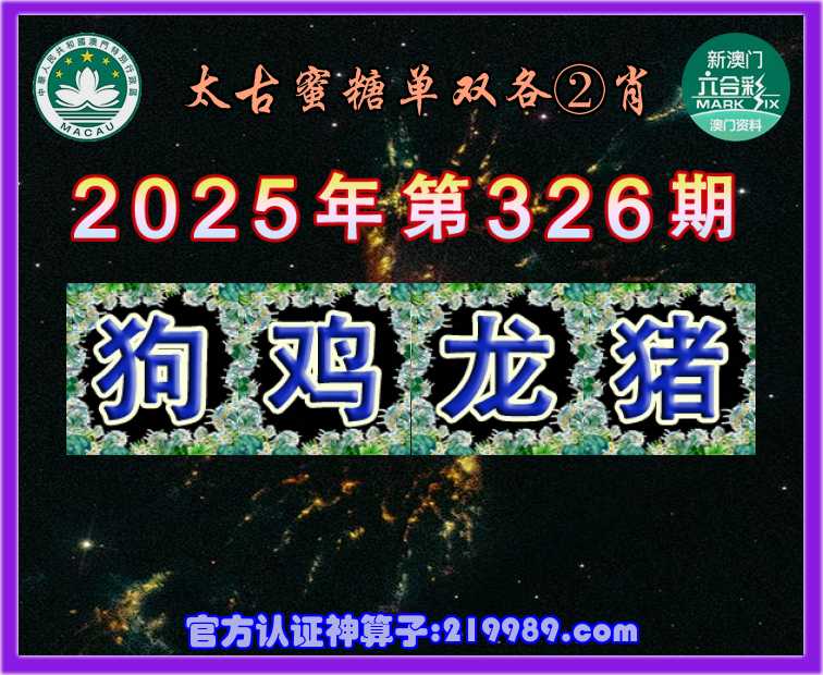 326期:〖太古蜜糖〗 🥉单双各②肖🥉【狗.鸡.龙.】开:猪19