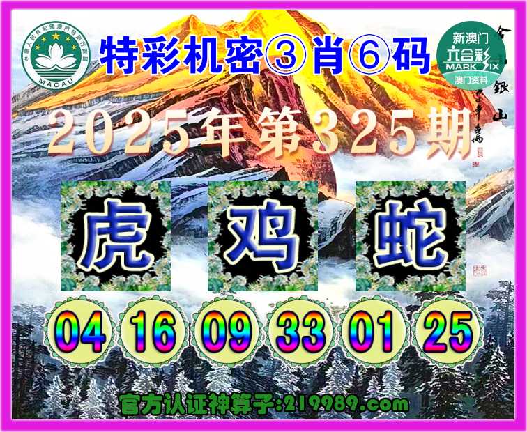 325期:【特彩机密】 👉③肖⑥码👉【鸡蛇】开:虎04