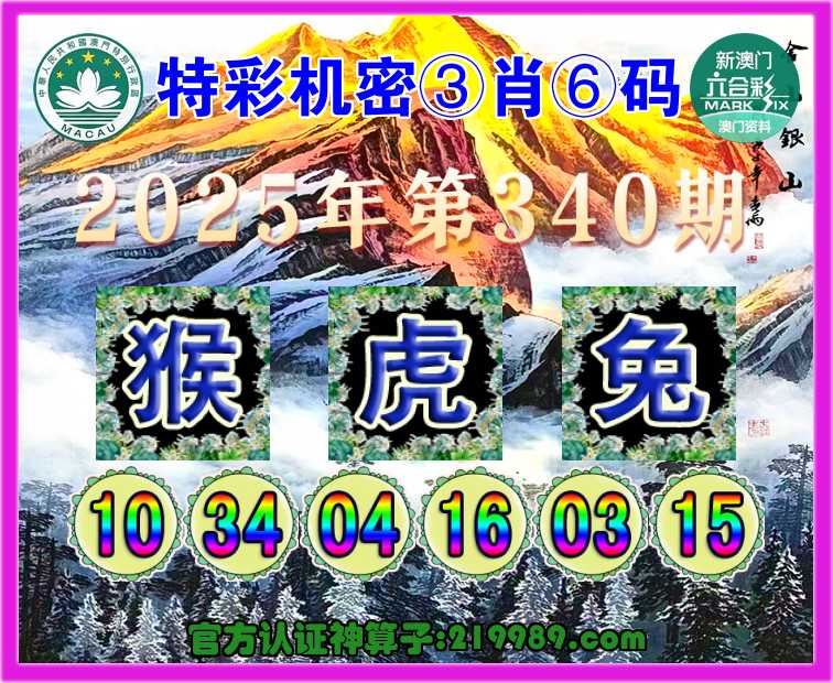 340期:【特彩机密】 👉③肖⑥码👉【猴兔】开:虎16