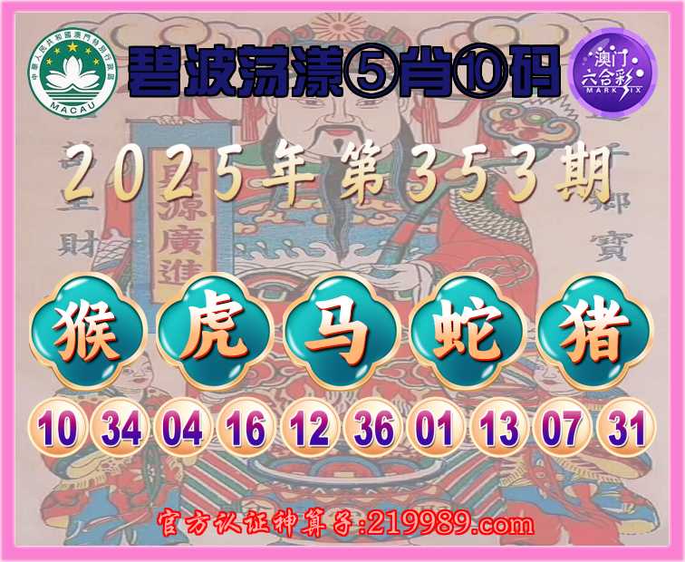 353期: 🐓『碧波荡漾』 🐓⑤肖⑩码🐓【猴虎马猪】开:蛇01