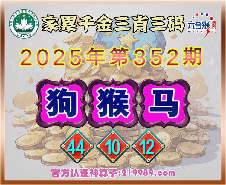 352期:【家累千金】 📸三肖三码📸【猴马】【44.10.12】开:狗44