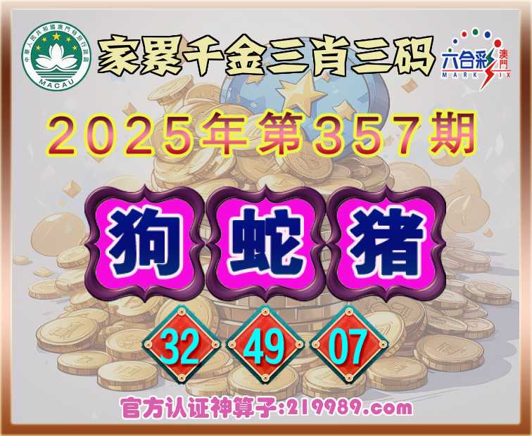 357期:【家累千金】 📸三肖三码📸【狗猪】【32.49.07】开:蛇49
