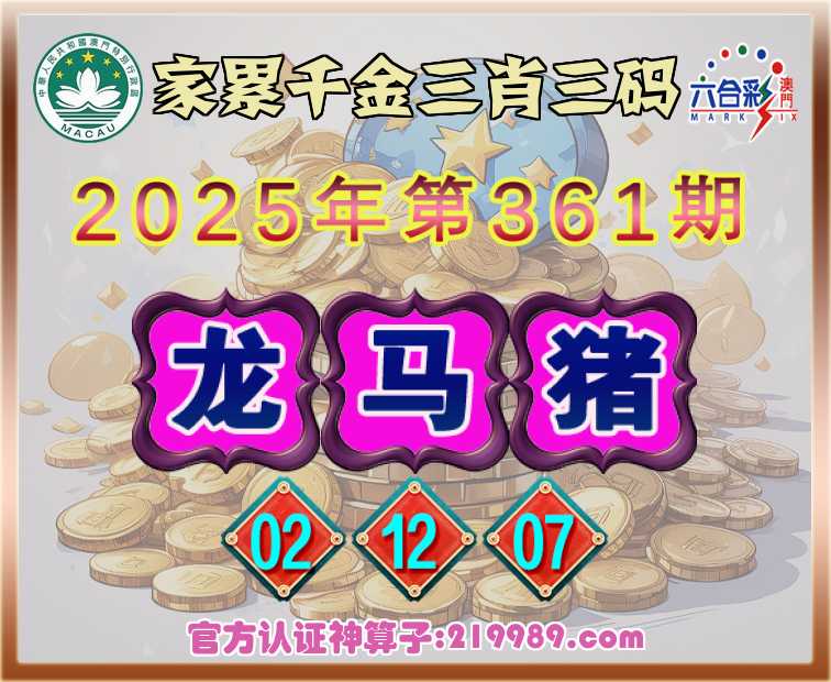 361期:【家累千金】 📸三肖三码📸【龙猪】【02.12.07】开:马24