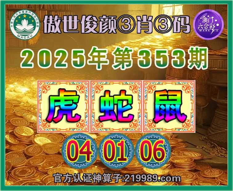353期:『傲世俊颜』 🥩③肖③码🥩【虎鼠】【04.01.06】开:蛇01