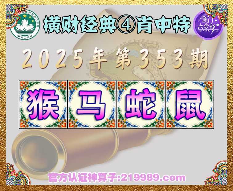 353期:【横财经典】 🌸④肖中特🌸【猴.马..鼠】开:蛇01