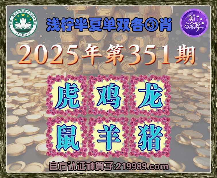 351期: 浅柠半夏 ♦️单双各③肖♦️【.鸡.龙.鼠.羊.猪】开:虎04