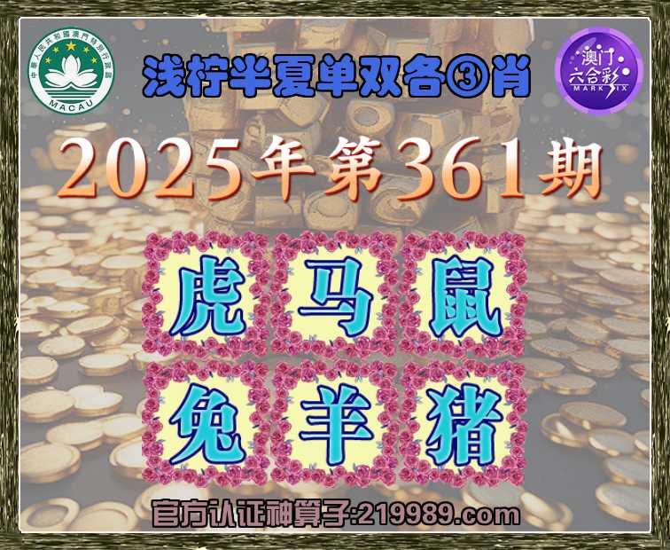 361期: 浅柠半夏 ♦️单双各③肖♦️【虎..鼠.兔.羊.猪】开:马24