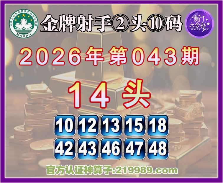 043期:《金牌射手》 🥠②头⑩码🥠【14头】开:13
