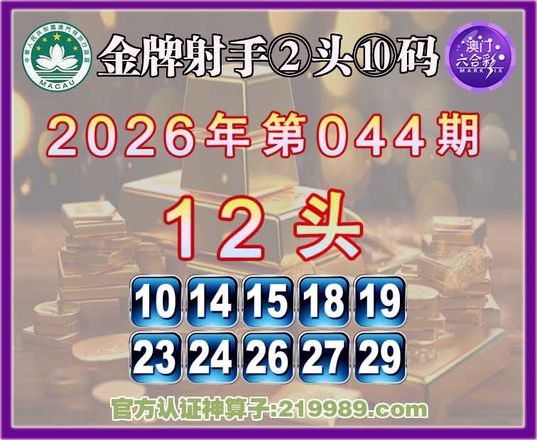 044期:《金牌射手》 🥠②头⑩码🥠【12头】开:19