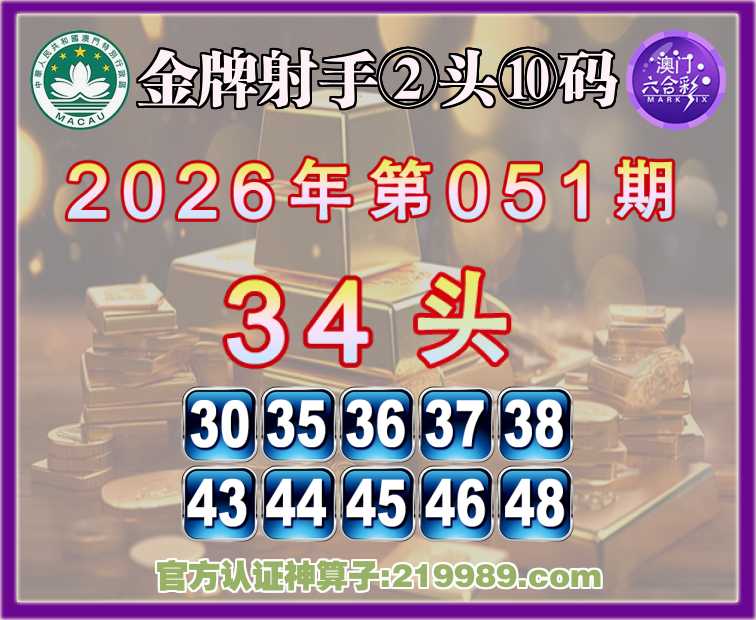 051期:《金牌射手》 🥠②头⑩码🥠【34头】开:01