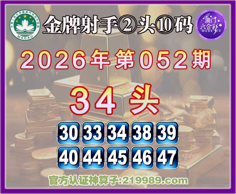 052期:《金牌射手》 🥠②头⑩码🥠【34头】开:38