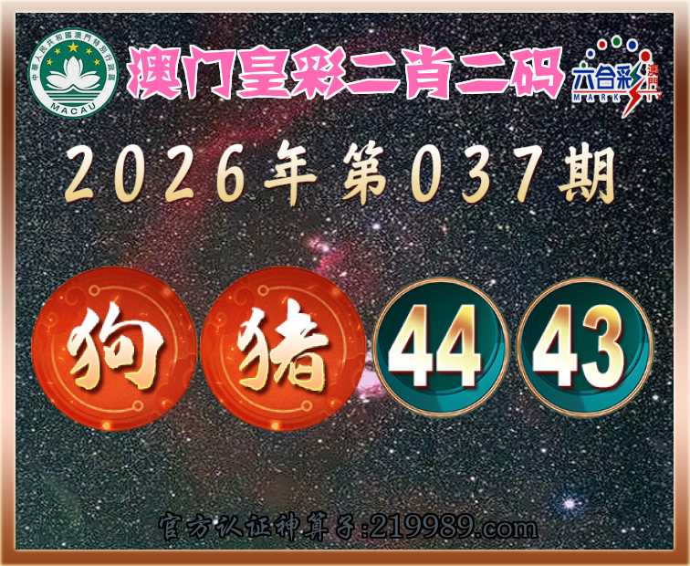 037期:『澳门皇彩』 🥼二肖二码🥼【狗】【44.43】开:猪43