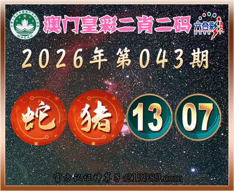 043期:『澳门皇彩』 🥼二肖二码🥼【猪】【13.07】开:蛇13