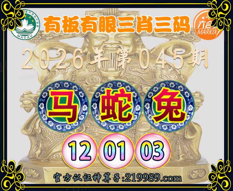 045期:【有板有眼】 🎪三肖三码🎪【马兔】【12.01.03】开:蛇01