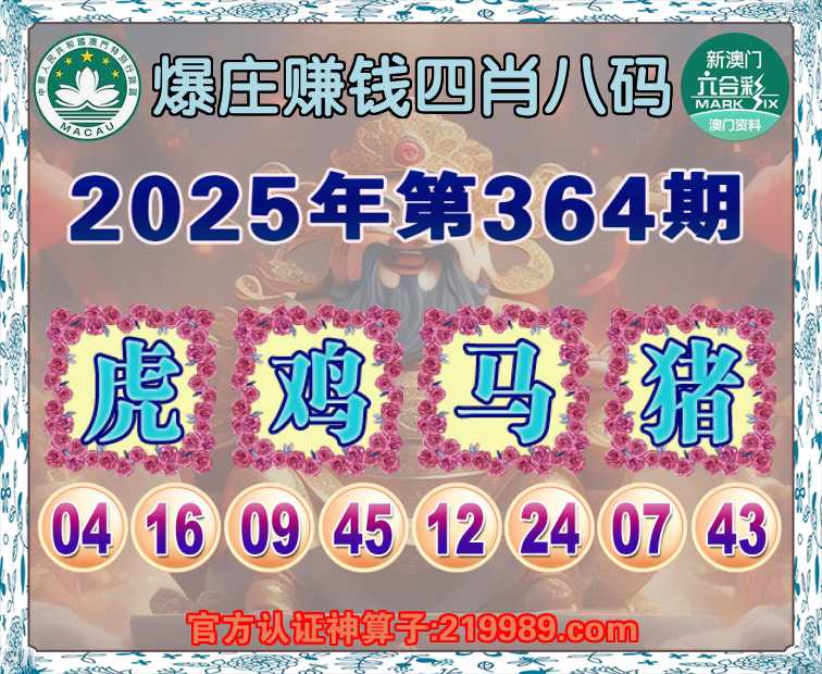 364期:『爆庄赚钱』 🚲四肖八码🚲【虎鸡猪】开:马12