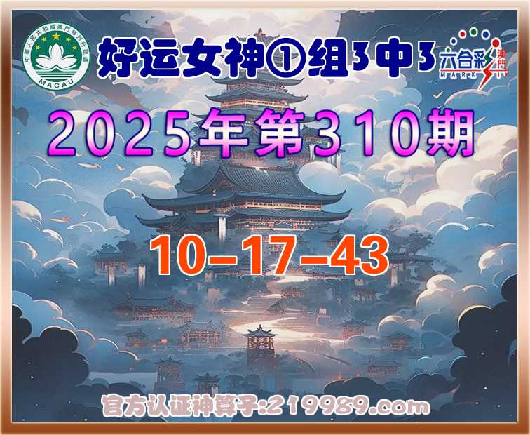 310期:【好运女神】 👈①组3中3👈【10-17-43