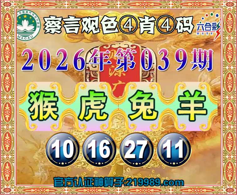 039期:【察言观色】 🥉④肖④码🥉【猴虎兔】【10.16.27.11】开:羊11