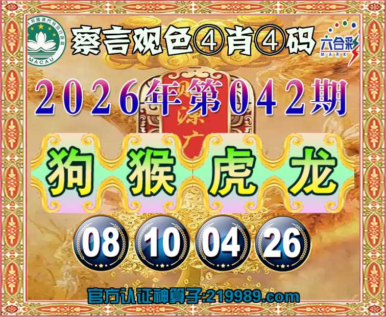 042期:【察言观色】 🥉④肖④码🥉【狗猴龙】【08.10.04.26】开:虎16