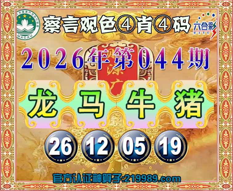 044期:【察言观色】 🥉④肖④码🥉【龙马牛】【26.12.05.19】开:猪19