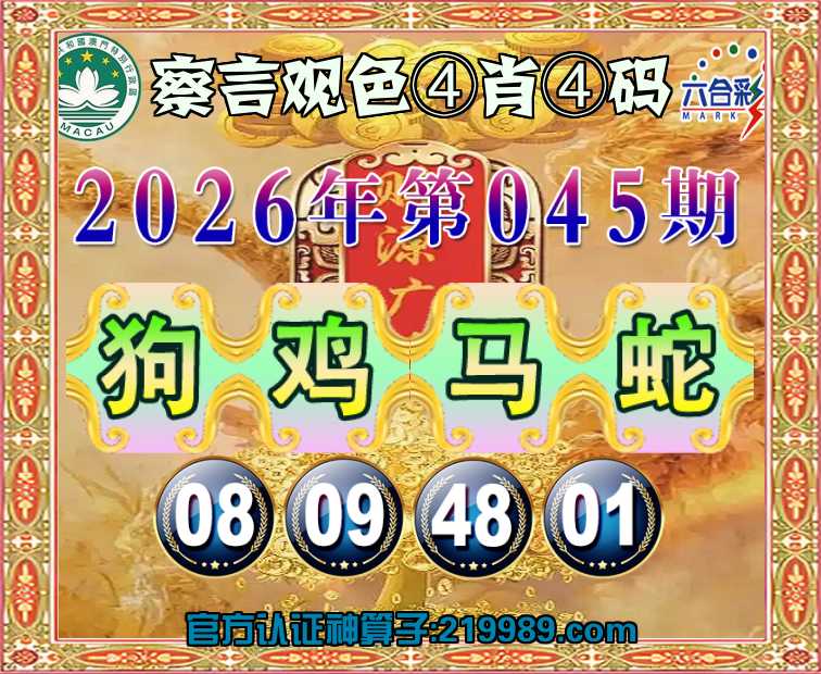 045期:【察言观色】 🥉④肖④码🥉【狗鸡马】【08.09.48.01】开:蛇01