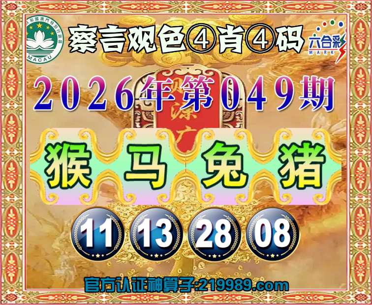 049期:【察言观色】 🥉④肖④码🥉【猴兔猪】【11.13.28.08】开:马13