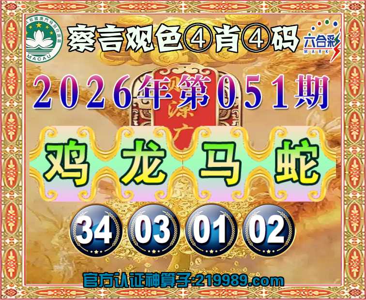 051期:【察言观色】 🥉④肖④码🥉【鸡龙蛇】【34.03.01.02】开:马01
